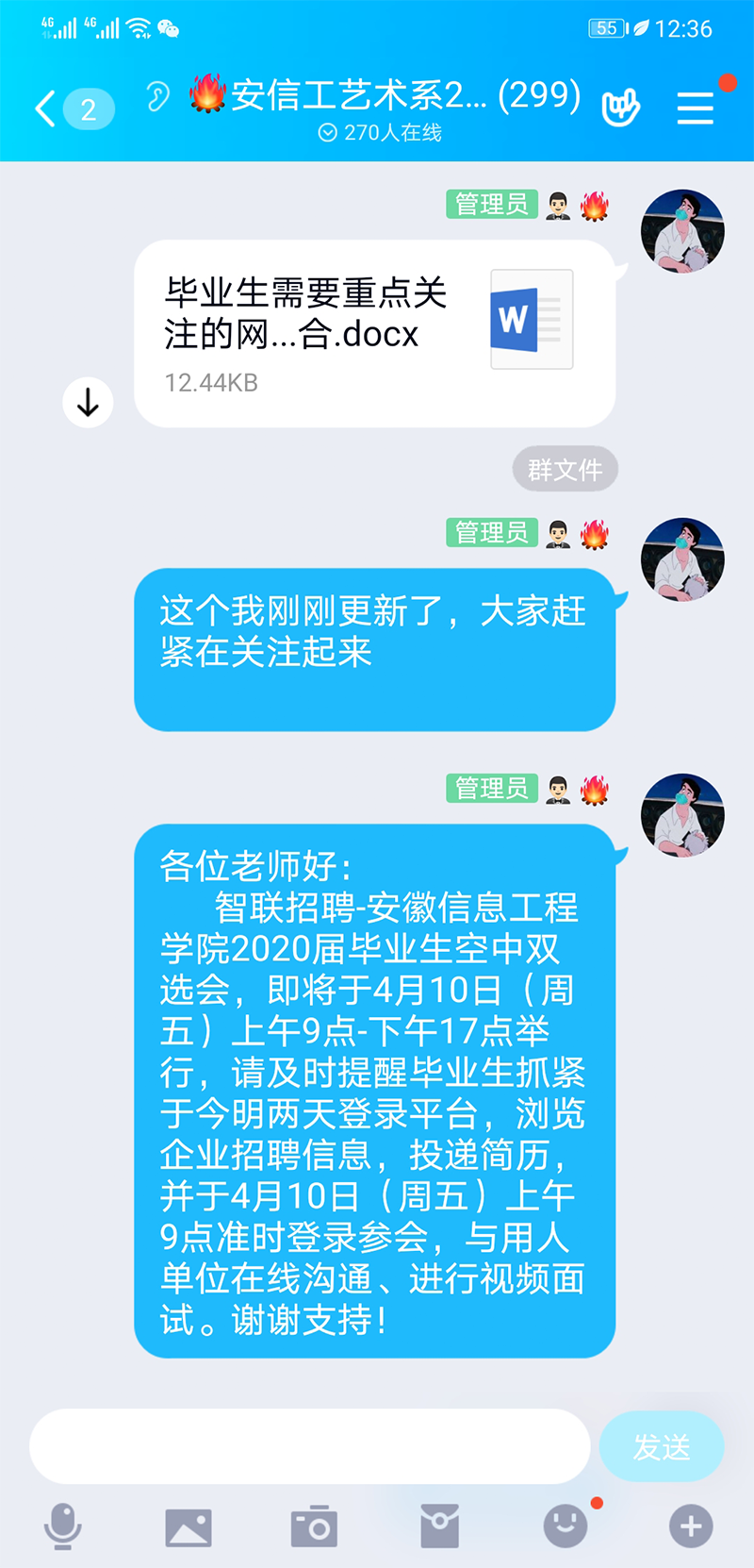 在指导帮扶毕业生的同时,学院主动对接用人单位,邀请用人单位在疫情防控期间举办各类线上招聘,推荐优秀毕业生赴校友企业实习就业,广泛开拓就业渠道。疫情发生以来,学院通过就业信息网、QQ群、微信公众号等多种途径,持续推送优质岗位信息;举办线上招聘会;筹办线上大型双选会。