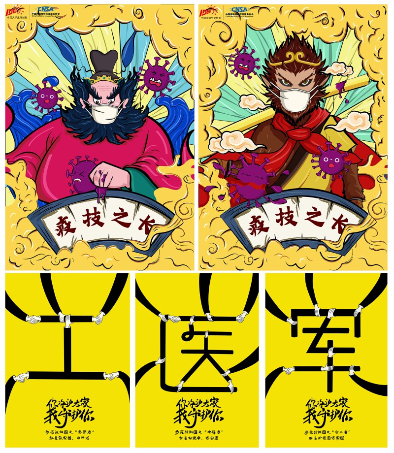 参与作品种类丰富,包括视频、游戏、海报、漫画、插画等等。一幅幅精美又富有创意的作品流露出为奋战在一线的工作者加油鼓劲,为疫情防控阻击战的决胜之地、英雄之城武汉提神振气。经过系列作品展示及评选,一大批优秀作品从中脱颖而出,最终评出了一、二、三等奖。据了解,斩获此次“齐心协‘艺’·共同战‘疫’”艺术作品征集活动“一等奖”的作品分别是:视传1801黄晶晶同学的《防疫》和视传1701王梦龄同学的《“疫”技之长》。