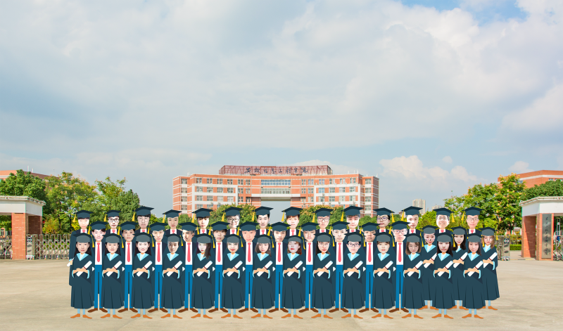 从大一到大四,他们见证了学校的点滴变化,也见证了自己的蜕变。四年太短,只能用照片定格瞬间。由于疫情原因,从实景式的毕业照替换成“云合影”,变化的是形式不变的是真情。毕业生们积极参与,运用专业所学知识,创作出一张专属于他们的毕业照。距离虽隔千里,心却彼此相依。照片中的他们笑脸如靥,没有幻想中的鲜花与拨穗,也没能亲手为自己穿上那身学士服,但他们无疑是疫情中独特的风景线。