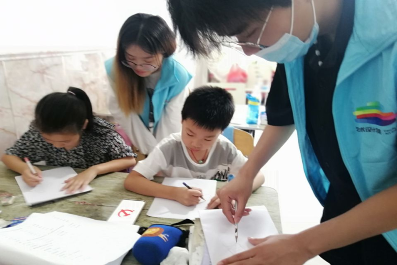 (图为志愿者一对一指导绘画)