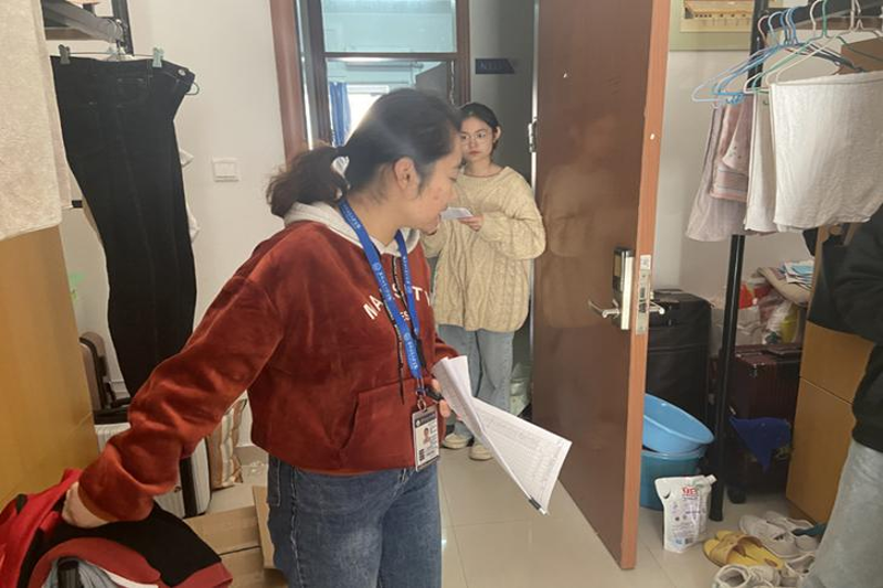 (图为老师查寝)