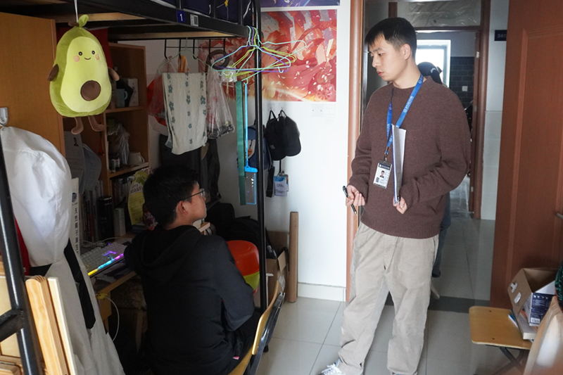 老师针对宿舍卫生死角、物品摆放、电器的使用向同学们提出严格要求,并对私接、乱拉电线,违规电器,插排使用规范性进行检查,提示学生要增强安全防火意识,做到人走断电,人走关灯。希望同学们积极维护维护卫生,营造干净、整洁、舒适、安全的学习生活环境,加强对文明宿舍建设的重要性的认识。