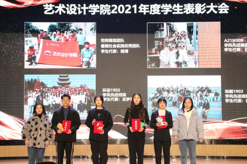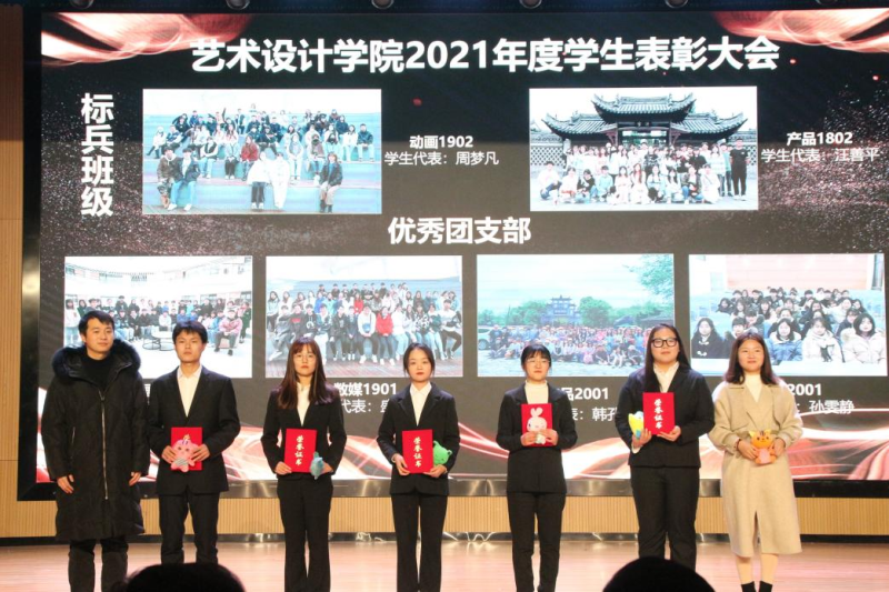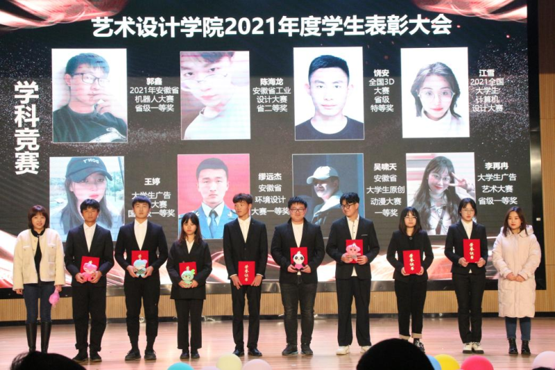 辞旧岁欢欣鼓舞庆胜利,迎新春豪情满怀谱新篇。在辞旧迎新之际,为表彰先进,传承作风,树立榜样,充分发挥优秀学生代表的示范引领作用。艺术设计学院于12月29日晚,A32学生活动中心隆重举行2021年度学生表彰大会暨2022元旦晚会。副校长葛付才,学生处处长吴晓,电气与电子工程学院执行院长章敏凤、副院长陈振,机械工程学院院长助理樊钒,通识与外国语学院院长助理陈巧巧,校团委副书记随小莉,艺术设计学院执行院长袁立庠、副院长周建、叶克军、院长助理钱琳、各教研室老师、全体辅导员以及2021级全体新生出席本场晚会。
