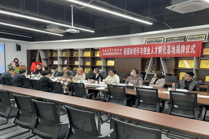 11月7日下午,芜湖东昊网络科技有限公司常务副总裁虞磊、人力资源总监杨冬梅、战略执行官叶海涛、芜湖市劳动保障人力资源有限公司副总经理罗洪涛、副部长余涛等一行人来到艺术设计学院,参加校企合作人才孵化基地揭牌仪式。艺术设计学院执行院长袁立庠、招就处副处长杨文宝、副院长骆琼、副院长钱琳、实验室副主任江鹏出席会议。揭牌仪式由骆琼主持。