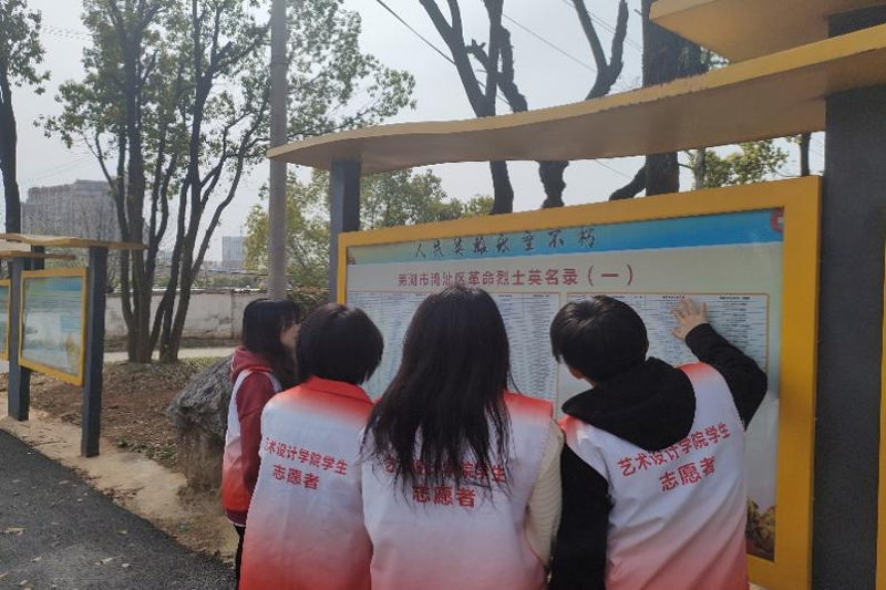 活动伊始,志愿者于校园南门集合,由活动负责人带领志愿者们有序前往湾沚区人民英雄纪念碑。天地英雄气,千秋尚凛然。到达活动现场,人民英雄纪念碑赫然耸立,虽历经风霜洗礼但仍旧焕发光芒。志愿者们为英雄之碑的雄伟气派而不禁发出感叹,他们严肃庄重,小声交流,怀抱着敬畏之心认真阅览纪念碑介绍板。