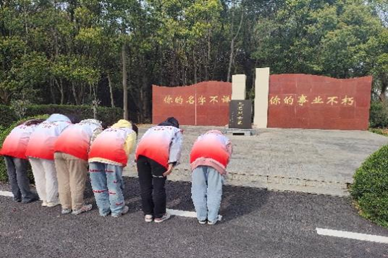 (图为志愿者向先烈致敬)