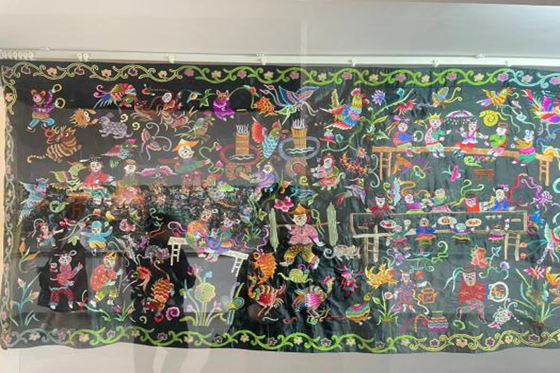 除台江县外,雷山县也有丰富的非物质文化遗产留存,考察一行人前往贵州成春非物质文化遗产传播开发有限公司,拜访苗绣非遗传承人高成春老师,高老师与考察人员进行了深入的交流,并细致的介绍了苗绣的历史、发展和传承,高老师曾参加中法友好建交50周年法国巴黎苗绣展开幕式,也曾与刘雯、陈乔恩等合作力推苗绣,并且还在贵州的高校进行苗绣的课程教授。高老师讲述了她与苗绣的故事,也提出其对苗绣传承与发展的感悟。