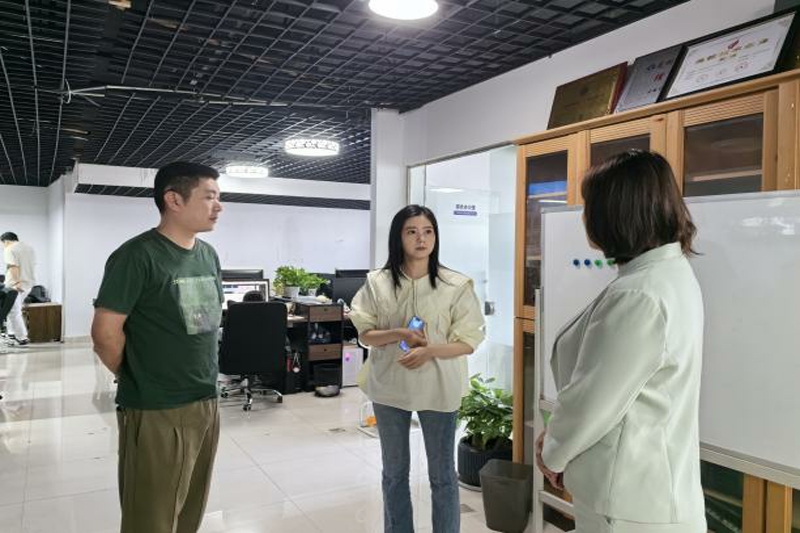随后,我们走访了艺像网络有限公司。骆琼向陈学冬总经理介绍了学院的专业优势、建设成就及未来规划,并强调双方应深入了解彼此的优势与特色。她提出,学院的专业课程与贵公司的业务需求高度匹配,具备较大的合作空间。双方表示会进一步加强沟通和合作,计划将实际项目引入教学,实现产教深度融合。