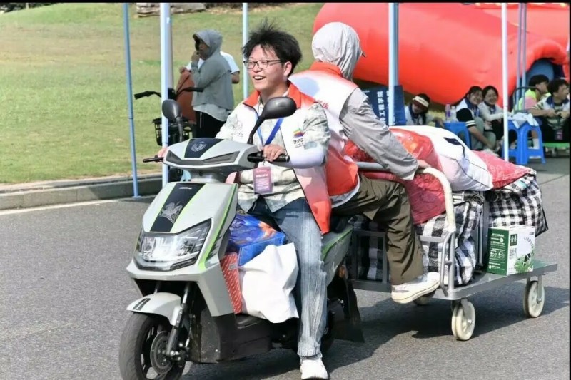 (图为志愿者为新生搬运行李)