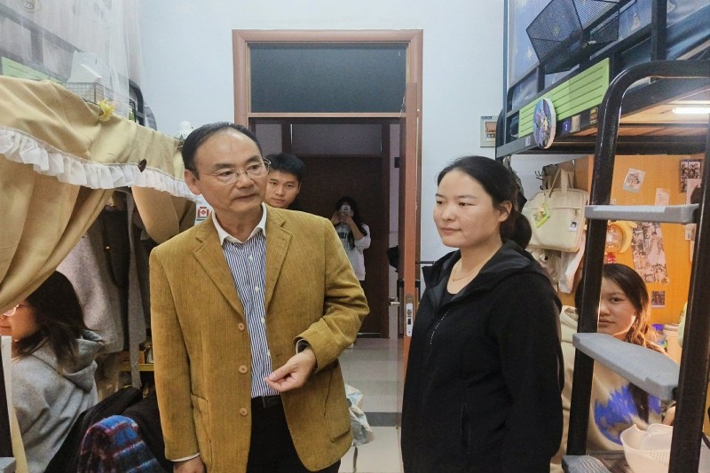 11月14日,安徽信息工程学院副校长朱尚玉、艺术设计学院副院长钱琳携学工秘书陶涛及23级辅导员一行亲临现场,他们带着对同学们的关心与期望,走进了多个参赛寝室,与同学们亲切交流。在走访过程中,朱校长仔细查看了每个寝室的设计作品,对同学们的创意和付出表示了高度赞赏。同时,他深入了解了同学们在寝室生活、学习中的困难和需求,并鼓励他们要继续发挥创新精神,将寝室打造成一个既美观又实用的生活空间。朱校长的到来,让同学们感受到了学校的关怀与温暖,也激发了他们更加积极地参与到寝室文化节的各项活动中来。