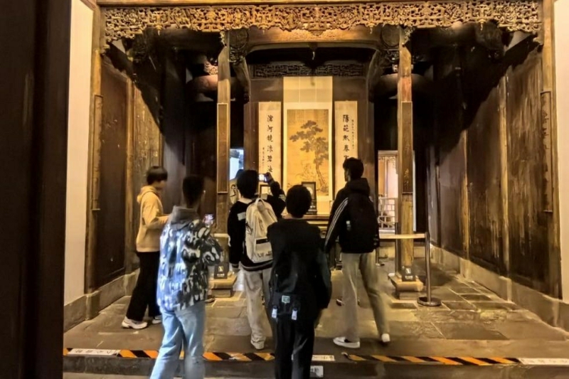 活动当天,同学们怀着对中华文化的敬仰和对艺术设计的热爱,踏上了前往安徽省博物馆的旅程。在抵达博物馆后,学生们首先参观了“徽州古建筑”展馆,深入了解了徽州文化的缘起、徽州建筑风格的布局特色以及徽州木、石、砖雕的造型特点和制作工艺。学生们纷纷表示,这些生动的展览让他们对徽州文化有了更为直观和深刻的认识。