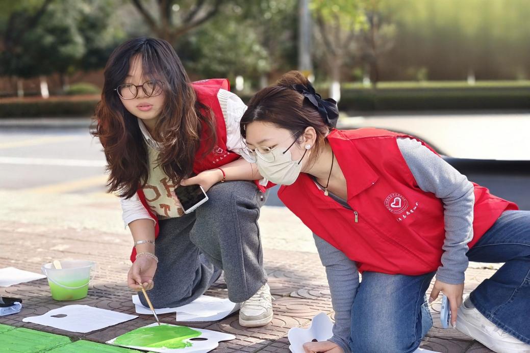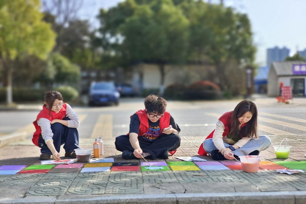 3月19日,芜湖市湾沚区第一小学门前的盲道上,一群身着红马甲的大学生手持画笔,用环保颜料为灰白地砖注入春日色彩。安徽信息工程学院艺术设计学院视传2302班的10名志愿者,通过专业彩绘改造无障碍设施,呼吁社会关注盲人出行权益。