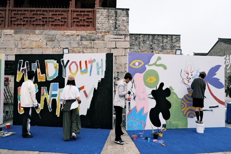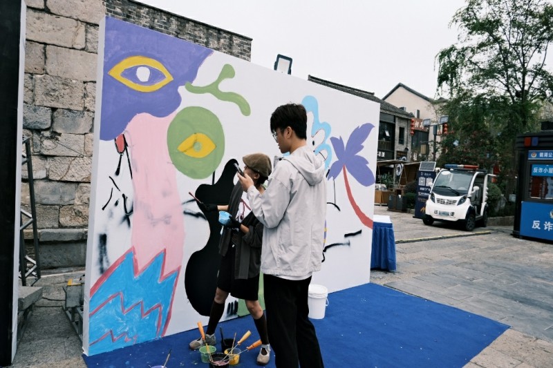 2025年9月下旬期间,受芜湖古城官方邀约,安徽信息工程学院艺术设计学院空间设计与表现社团在环设专业老师张涛的带领下,与3A级景区芜湖古城合作,积极投身“野生・青年灵感派对”核心环节——先锋艺术・青年涂鸦展。本次社会实践活动以芜湖古城标志性建筑谯楼广场为创作基地,借助画笔为媒,为千年古城注入青春艺术活力,在师生共同协作下,顺利完成了为期三天的系列彩绘、涂鸦作品《青红皂白》,不仅以专业技能为景区注入青春艺术活力,激活青年创意动能,同时搭建起高校与社会互动交流的实践桥梁,探索了艺术与文化融合的新形式。